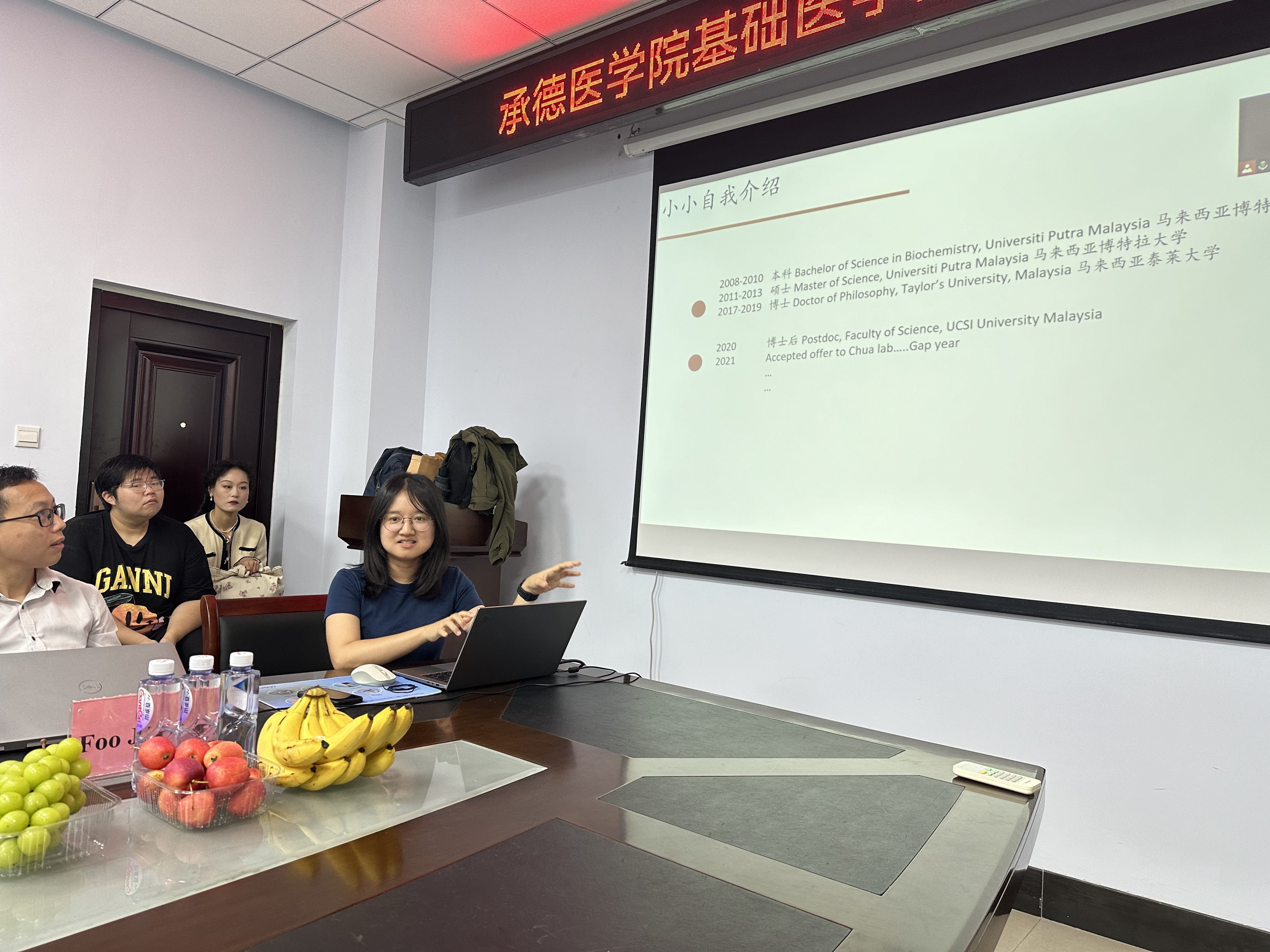 为进一步提升我校师生的科学技术水平,拓展科研视野,促进基础医学的建设与发展,增进国际间学术交流与合作,2024年9月9日,我校基础医学院特别邀请了马来西亚泰莱大学Foo Jhi Biau副教授和上海交通大学医学院仁济医院Foong Lian Chee博士后为我院师生作学术报告。基础医学院青年博士和全体研究生参加本次活动,活动由基础医学院副院长侯志平主持。 首先,侯志平致欢迎词,衷心感谢并热烈欢迎来自马来西亚的两位专家莅临本次活动,共襄盛举。向参会人员介绍了两位专家的学术背景和研究领域,并希望与会老师和同学珍惜与国外专家交流学习的机会,了解相关领域前沿内容,拓宽科研思路和视野。上海交通大学医学院仁济医院在站博士后Foong Lian Chee以《Bioinformatics-based Exploration of Prostate Luminal and Cancer Stem Cells》为题,分享了她博士后研究工作中的最新成果,展示了生物信息学技术在肿瘤标志物的筛选及干细胞研究领域的巨大应用前景。马来西亚泰莱大学Foo Jhi Biau副教授首先介绍了马来西亚泰莱大学的发展历程以及当前学科设置和科研情况,随后以《Progress in Lung Inflammation and Fibrosis Research: Insights from Our Lab》为题分享了他在肺部炎症和纤维化研究领域的最新研究成果,为与会师生提供了全新的科研视角。