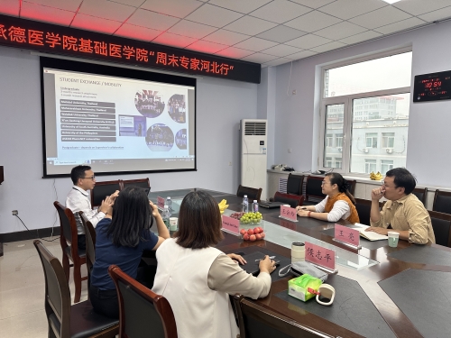 报告结束后,我校国际教育学院与两位专家就学校未来与马来西亚泰莱大学访问交流、合作办学以及科研合作进行讨论和协商,并达成初步共识。活动结束后,两位专家参观考察了基础医学院各研究平台,通过进一步的考察和交流,双方对今后的合作增强了信心。 此次“周末专家河北行”活动的开展,不仅为师生提供了与国外专家交流学习的机会,营造浓厚的学术氛围,也为今后积极搭建国际交流平台,促进双方学术交流与办学合作提供有利契机。